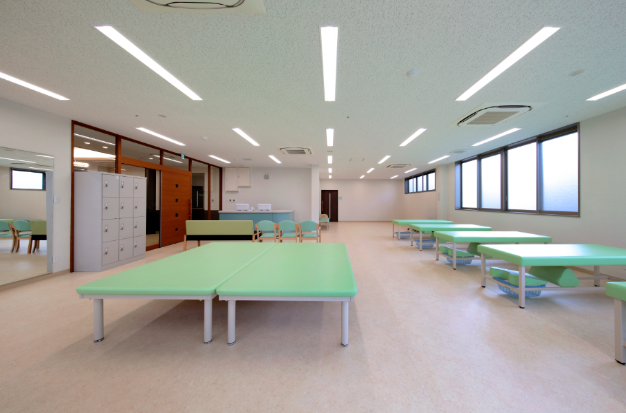 ・治療ベッド・平行棒・姿勢矯正鏡・低周波治療器・乾式ホットパック・超音波治療器・エアロバイク・天然温泉・温泉プールなど